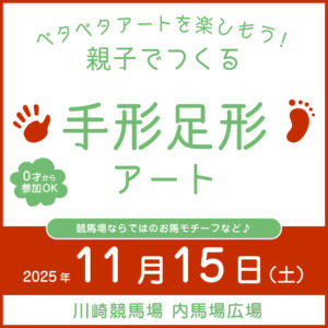 2025年11月15日(土)に川崎競馬場内馬場広場で「第21回 親子でつくる手形足形アート~ペタペタアートを楽しもう!~」ワークショップを開催します!おこさまの手形や足形をさまざまなモチーフに 見立て、誰でも簡単におこさ […]