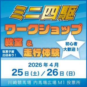 2026年4月25日(土)と26日(日)ミニ四駆 ワークショップ 教室&走行体験会 in 川崎競馬場 開催!! ミニ四駆が気になっている方、興味がある方、ミニ四駆を走らせてみたいなど初めての方大歓迎!ミニ四駆の購 […]